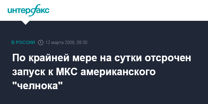 Москва. 12 марта. INTERFAX.RU - Запуск к МКС американского космического "челнока" "Дискавери" отложен в среду из-за обнаружения утечки водорода из внешнего топливного бака, сообщает сайт НАСА.