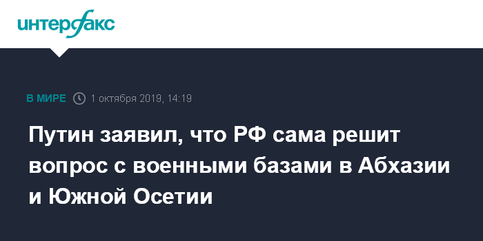 Москва. 1 октября. INTERFAX.RU - Россия сама примет решение по вопросу пребывания ее военных баз в Абхазии и Южной Осетии, заявил президент РФ Владимир Путин.
