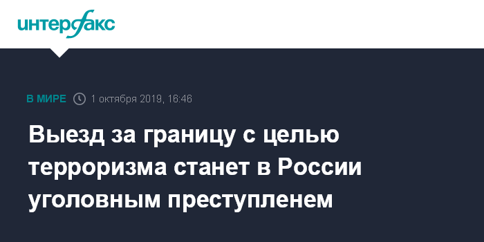 Выезд за границу с целью терроризма станет в России уголовным преступленем
