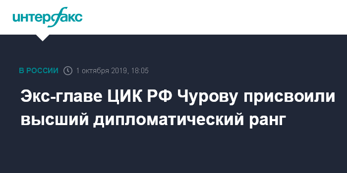 Москва. 1 октября. INTERFAX.RU - Президент РФ Владимир Путин присвоил ранг чрезвычайного и полномочного посла экс-главе ЦИК РФ Владимиру Чурову.