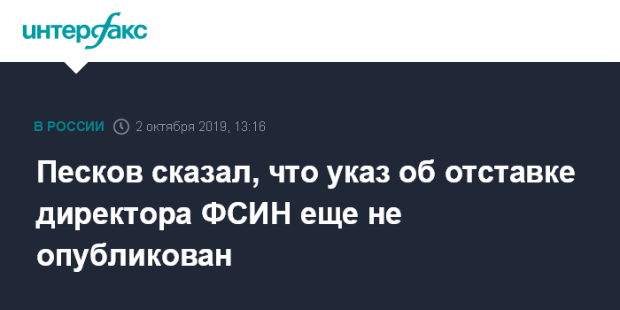 Песков сказал, что указ об отставке директора ФСИН еще не опубликован