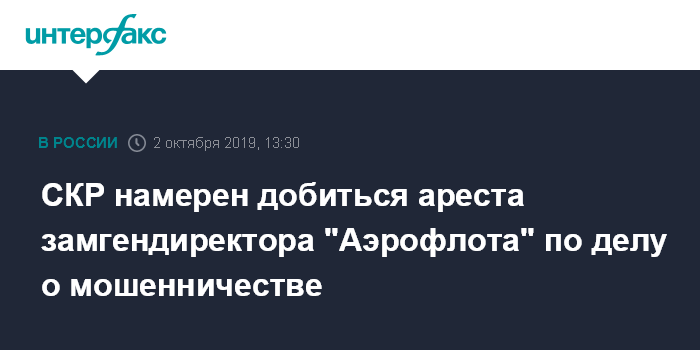 СКР намерен добиться ареста замгендиректора "Аэрофлота" по делу о мошенничестве