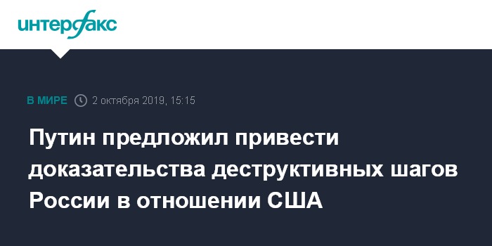 Путин предложил привести доказательства деструктивных шагов России в отношении США