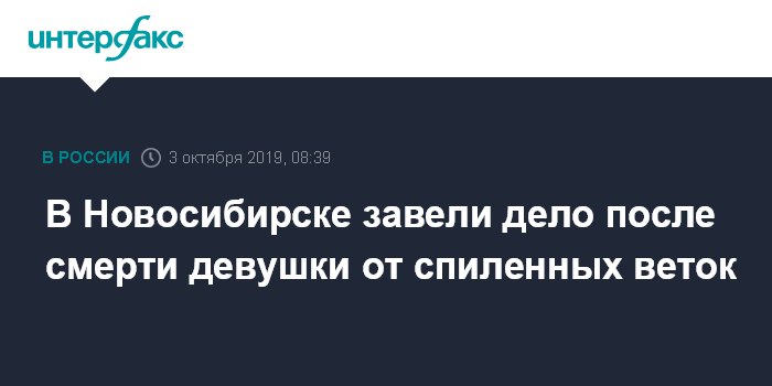 Москва. 3 октября. INTERFAX.RU - Следователи в Новосибирске возбудили уголовное дело после гибели девушки, на которую упали спиленные с деревьев ветки, сообщает пресс-центр регионального следственного управления СК РФ в четверг.