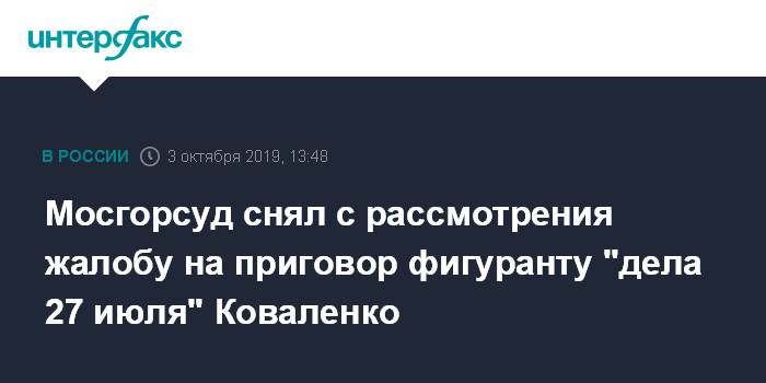Мосгорсуд снял с рассмотрения жалобу на приговор фигуранту "дела 27 июля" Коваленко