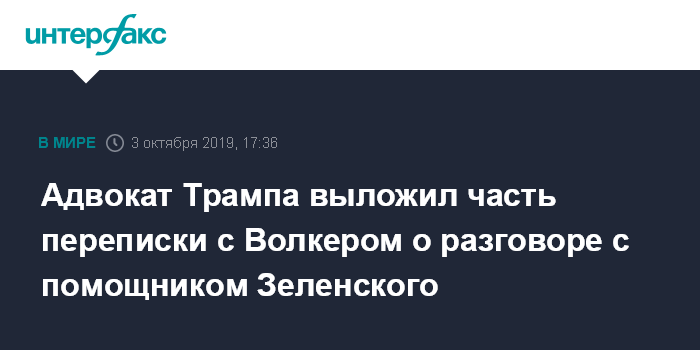 Адвокат Трампа выложил часть переписки с Волкером о разговоре с помощником Зеленского