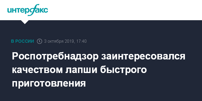 Москва. 3 октября. INTERFAX.RU - Федеральная служба по надзору в сфере защиты прав потребителей и благополучия человека (Роспотребнадзор) запросила у Роскачества подробности лабораторного исследования безопасности лапши быстрого приготовления на полках российских магазинов и взяла вопрос на особый контроль.