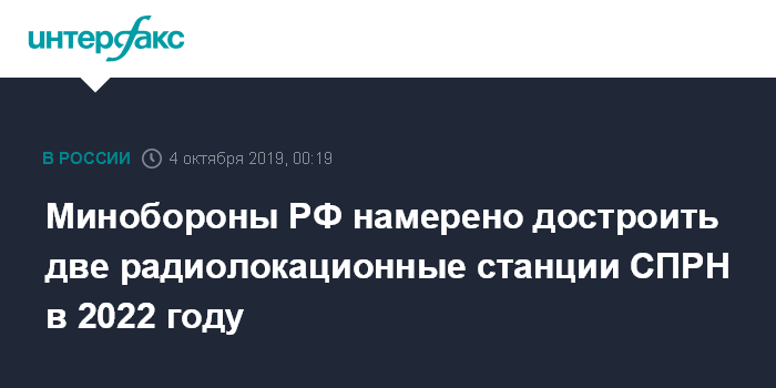 Минобороны РФ намерено достроить две радиолокационные станции СПРН в 2022 году