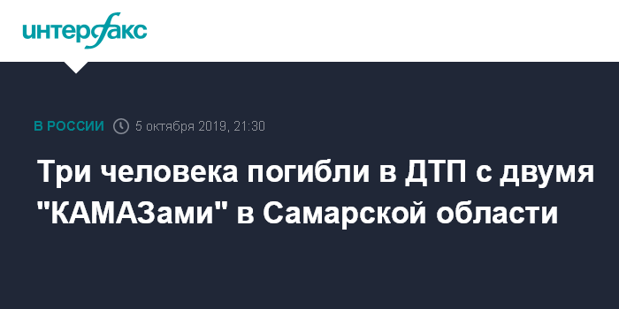 Москва. 5 октября. INTERFAX.RU - Столкновение автомобиля "Нива" с двумя грузовиками "КАМАЗ" в Самарской области унесло жизни трех человек вечером в субботу, сообщили агентству "Интерфакс" в пресс-службе регионального главка МВД РФ.