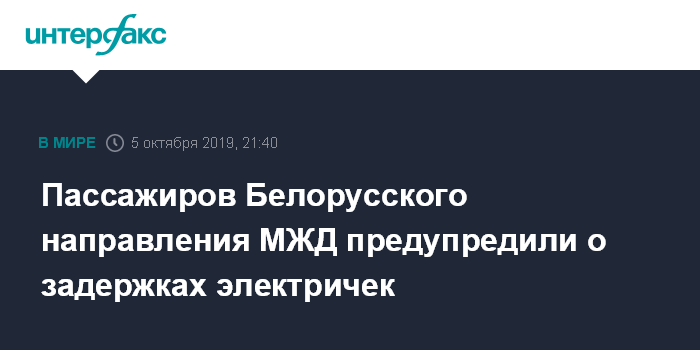 Москва. 5 октября. INTERFAX.RU - По техническим причинам задерживаются электрички на Белорусском направлении Московской железной дороги (МЖД), сообщает пресс-служба компании.