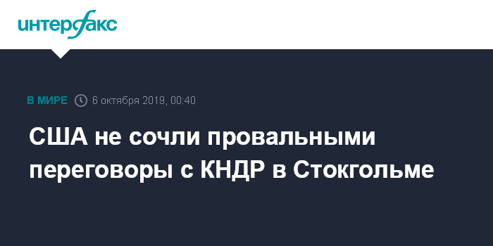 США не сочли провальными переговоры с КНДР в Стокгольме