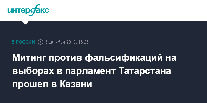 Москва. 6 октября. INTERFAX.RU - Согласованный с властями митинг против фальсификаций на прошедших 8 сентября выборах в Государственный совет Татарстана состоялся в Авиастроительном районе Казани в воскресенье, передал корреспондент "Интерфакса".