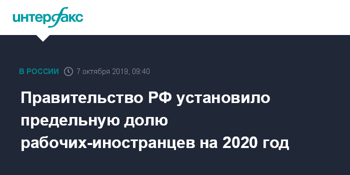 Правительство РФ установило предельную долю рабочих-иностранцев на 2020 год