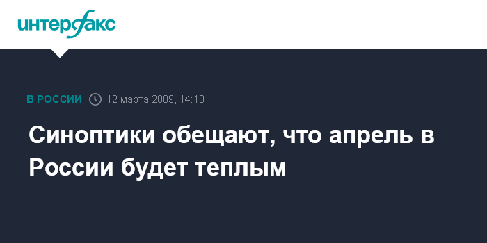 Москва. 12 марта. INTERFAX.RU - Апрель на большей части России будет теплым - температурный режим ожидается выше нормы, сообщил глава Росгидромета Александр Бедрицкий.