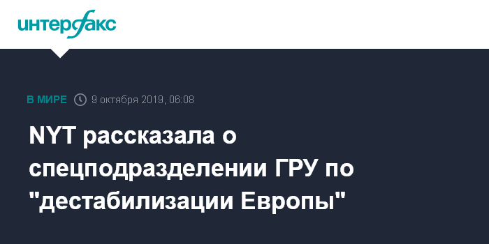 NYT рассказала о спецподразделении ГРУ по "дестабилизации Европы"