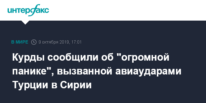 Москва. 9 октября. INTERFAX.RU - Представитель курдских военизированных формирований на севере Сирии подтвердил, что Турция начала военную операцию в этом районе, сообщает в среду агентство Associated Press.