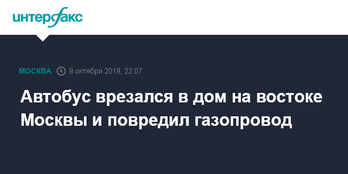 Москва. 9 октября. INTERFAX.RU - Автобус врезался в стену жилого дома и повредил газопровод на востоке Москвы, сообщил "Интерфаксу" информированный источник.