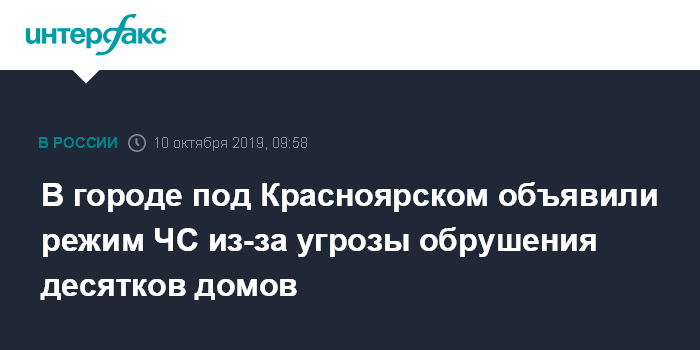 В городе под Красноярском объявили режим ЧС из-за угрозы обрушения десятков домов