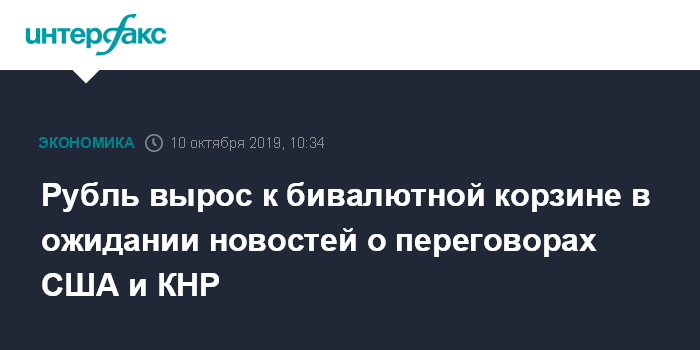 Как отмечают эксперты "Интерфакс-ЦЭА", рубль повышается к бивалютной корзине на старте торгов четверга на ожиданиях старта 13-го раунда торговых переговоров между США и Китаем. Участники рынка следят за противоречивыми сообщениями СМИ в преддверии старта переговоров. Оптимизм инвесторов поддержали сообщения СМИ о том, что США и Китай могут заключить промежуточное торговое соглашения.