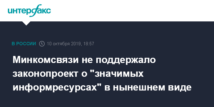 Минкомсвязи не поддержало законопроект о "значимых информресурсах" в нынешнем виде