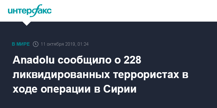 Anadolu сообщило о 228 ликвидированных террористах в ходе операции в Сирии