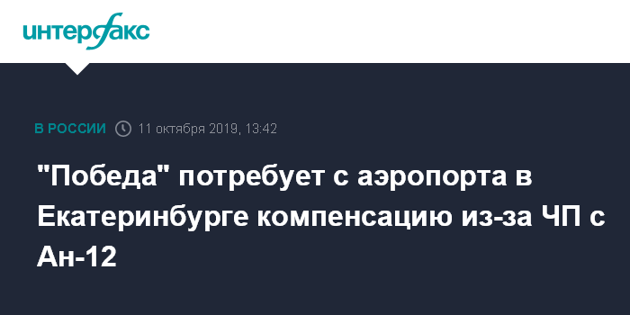 Москва. 11 октября. INTERFAX.RU - Авиакомпания "Победа" хочет взыскать с екатеринбургского аэропорта "Кольцово" расходы за задержку рейсов после нештатной посадки в воздушной гавани самолета Ан-12, которая произошла накануне, 10 октября.