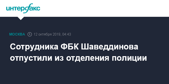 Москва. 12 октября. INTERFAX.RU - Сотрудник Фонда борьбы с коррупцией (ФБК) Руслан Шаведдинов отпущен из отделения полиции в Москве, об этом он сообщил на своей странице в твиттере.