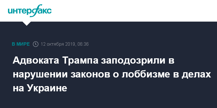Адвоката Трампа заподозрили в нарушении законов о лоббизме в делах на Украине