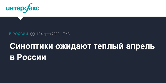 Москва. 12 марта. INTERFAX.RU - Апрель на большей части России будет теплым - температурный режим ожидается выше нормы, сообщил глава Росгидромета Александр Бедрицкий.