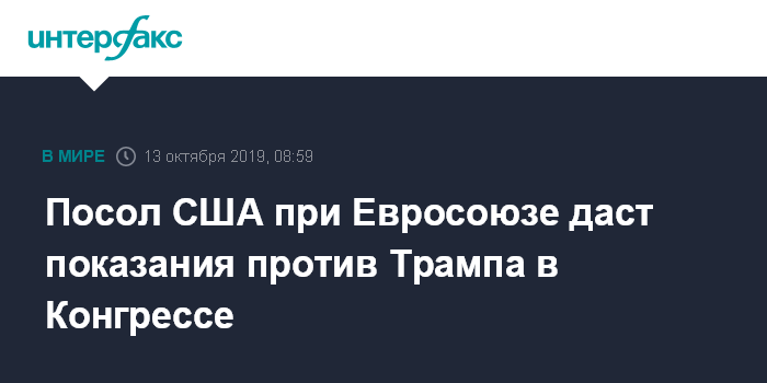 Посол США при Евросоюзе даст показания против Трампа в Конгрессе