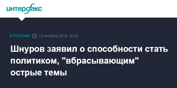 Москва. 13 октября. INTERFAX.RU - Лидер группы "Ленинград" Сергей Шнуров не исключил возможности стать политиком, отметив, что может вбросить острую тему для обсуждения.