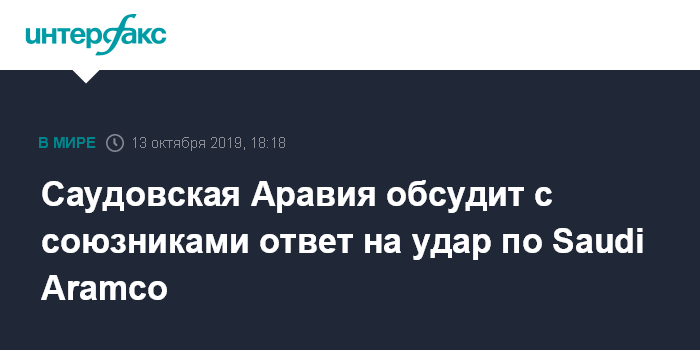 Саудовская Аравия обсудит с союзниками ответ на удар по Saudi Aramco