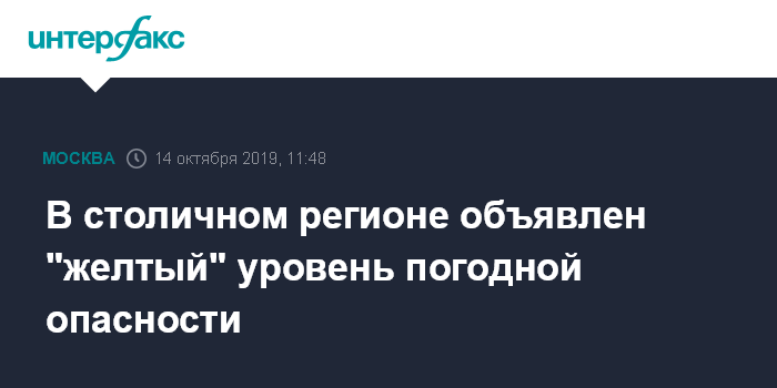 Москва. 14 октября. INTERFAX.RU - Синоптики предупредили о "желтом" уровне погодной опасности в Москве и Московской области в понедельник из-за порывов ветра, сообщается на сайте Гидрометцентра РФ.