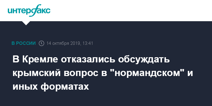 Москва. 14 октября. INTERFAX.RU - Обсуждение вопроса принадлежности Крыма в "нормандском" или иных форматах невозможно, этот вопрос "был закрыт в свое время", заявил пресс-секретарь президента РФ Дмитрий Песков.