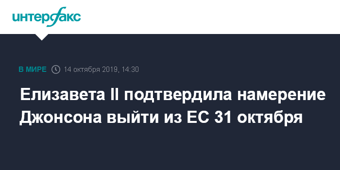 Елизавета II подтвердила намерение Джонсона выйти из ЕС 31 октября