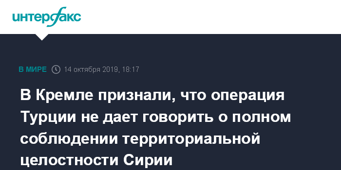 В Кремле признали, что операция Турции не дает говорить о полном соблюдении территориальной целостности Сирии