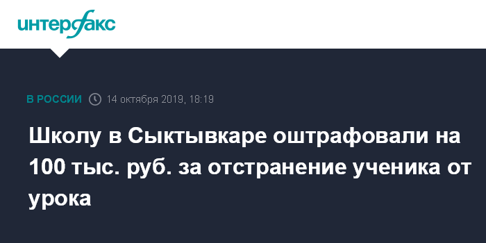 Школу в Сыктывкаре оштрафовали на 100 тыс. руб. за отстранение ученика от урока