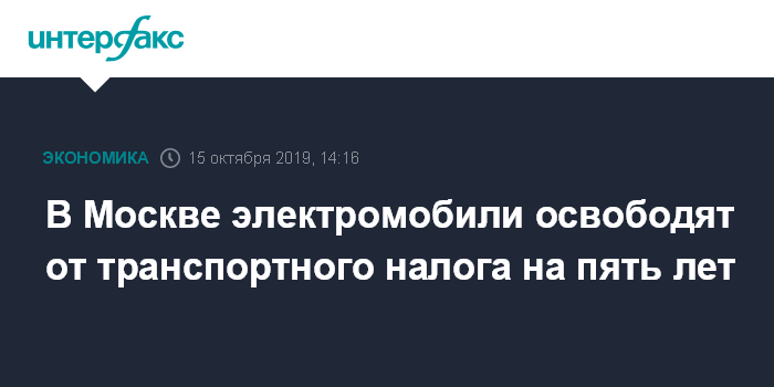 Отмена налога для электромобиля вошла в пакет поправок в налоговое законодательство Москвы. Кроме этого пакет предполагает льготу в размере 97% от исчисленной суммы налога на имущество организаций в отношении парков развлечений. Это послабление, в частности, коснется строящегося парка развлечений в Нагатинской пойме.