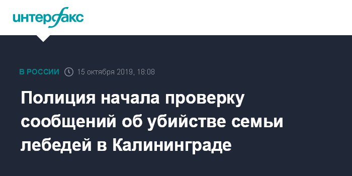 Москва. 15 октября. INTERFAX.RU - В Калининграде полиция начала проверку публикаций в соцсетях об отстреле нескольких лебедей на озере в Зеленоградском районе. Об этом сообщили в пресс-службе областного управления МВД.
