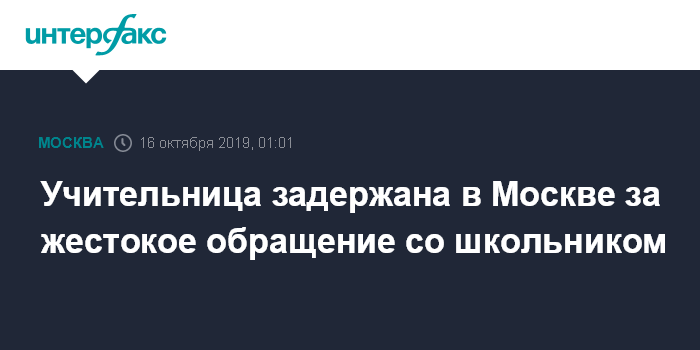 Москва. 16 октября. INTERFAX.RU - Московские полицейские задержали школьную учительницу по подозрению в жестоком обращении с 11-летним учеником, сообщила официальный представитель МВД Ирина Волк.