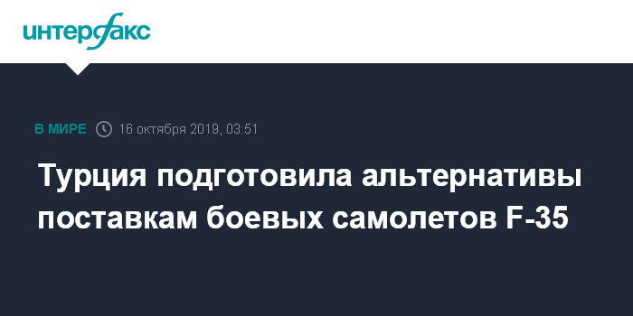 Москва. 16 октября. INTERFAX.RU - Президент Турции Реджеп Тайип Эрдоган заявил, что у его страны уже есть реальные возможные альтернативы поставкам американских боевых самолётов F-35.