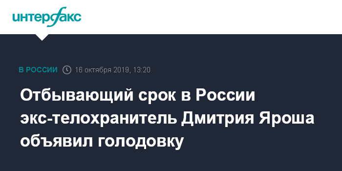 Отбывающий срок в России экс-телохранитель Дмитрия Яроша объявил голодовку