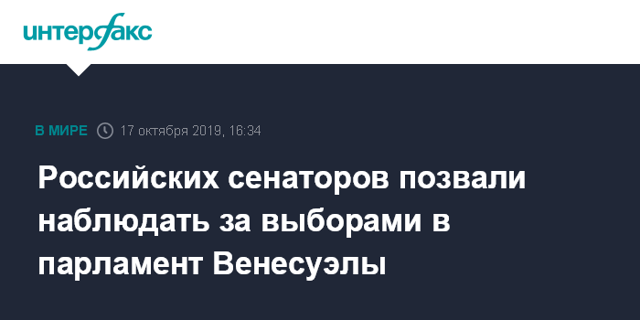 Москва. 17 октября. INTERFAX.RU - Каракас рассчитывает, что российские сенаторы приедут в 2020 году в качестве наблюдателей за выборами в парламент Венесуэлы, сообщил глава Национального учредительного собрания страны Диосдадо Кабельо Рондон.