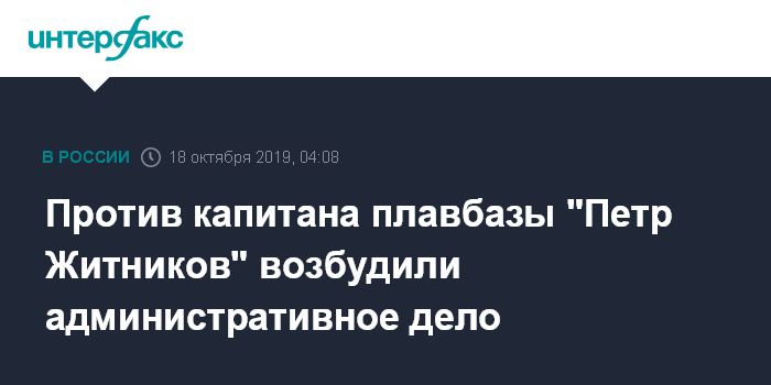 Против капитана плавбазы "Петр Житников" возбудили административное дело