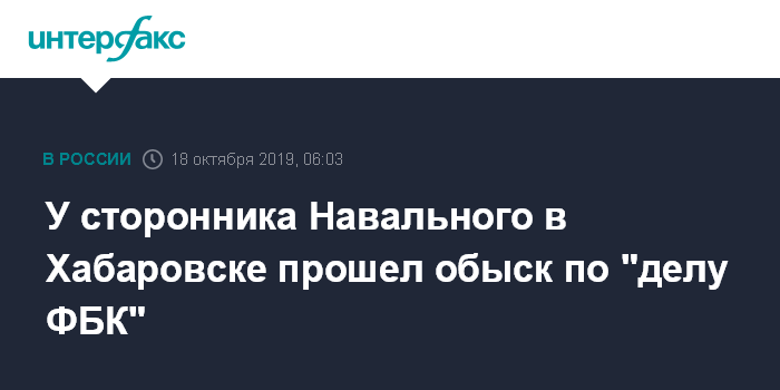 У сторонника Навального в Хабаровске прошел обыск по "делу ФБК"