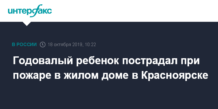 Москва. 18 октября. INTERFAX.RU - Грудной ребенок отравился угарным газом во время пожара в жилом доме в Красноярске, где загорелась шахта лифта, сообщает пресс-служба регионального главка МЧС России.