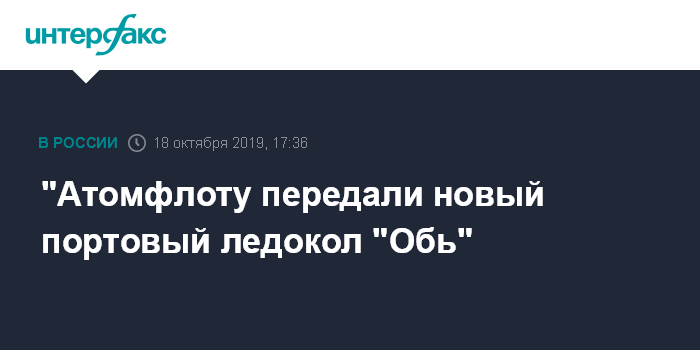 Москва. 18 октября. INTERFAX.RU - ПАО "Выборгский судостроительный завод" (ВСЗ, входит в "Объединенную судостроительную корпорацию") в пятницу передало ФГУП "Атомфлот" портовый дизель-электрический ледокол "Обь" проекта Aker ARC 124, сообщает пресс-служба госкорпорации "Росатом".