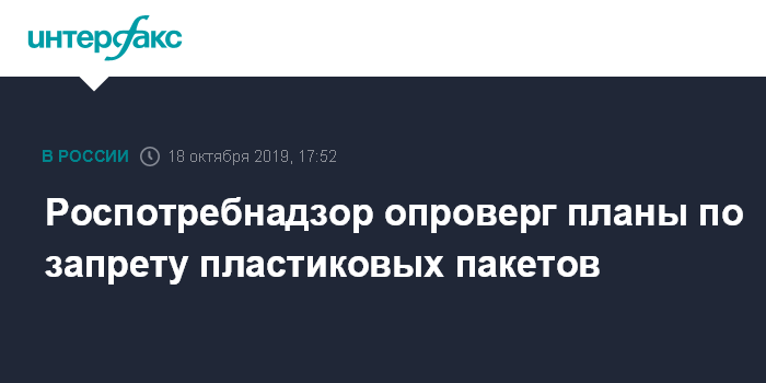 "Федеральная служба по надзору в сфере защиты прав потребителей и благополучия человека не готовит законопроект о запрете производства пластиковых пакетов", - говорится в сообщении пресс-службы, поступившем в "Интерфакс" в пятницу.