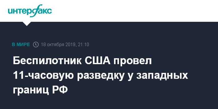 Москва. 18 октября. INTERFAX.RU - Стратегический разведывательный беспилотник ВВС США RQ-4B Global Hawk в пятницу совершил 11-часовой полет у западных рубежей России, следует из мониторинговых данных западных авиационных ресурсов.