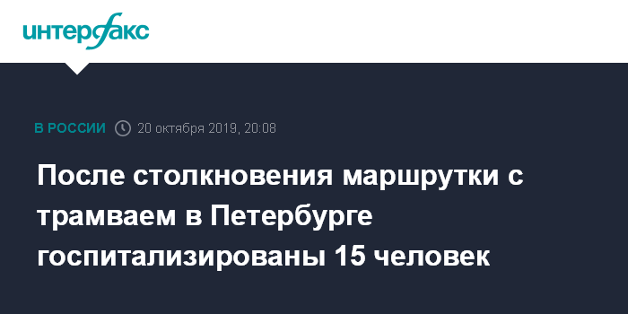 Москва. 20 октября. INTERFAX.RU - В результате аварии маршрутки и трамвая в Петербурге пострадали 16 пассажиров, в том числе трое несовершеннолетних.